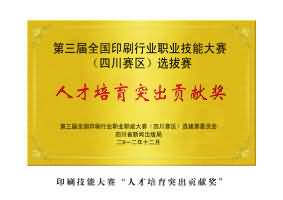 2012年獲得第三屆全國(guó)印刷行業(yè)職業(yè)職能大賽(四川賽區(qū))選拔賽人才培育突出貢獻(xiàn)獎(jiǎng)